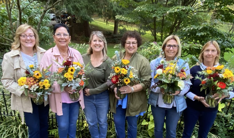Before we begin, we'll take a tour of our flower farm and you'll learn a bit about locally grown flowers! We'll enjoy a light snack together as we learn about each flower; how to prepare them for design work; how to make an arrangement; and learn how to extend their vase life.